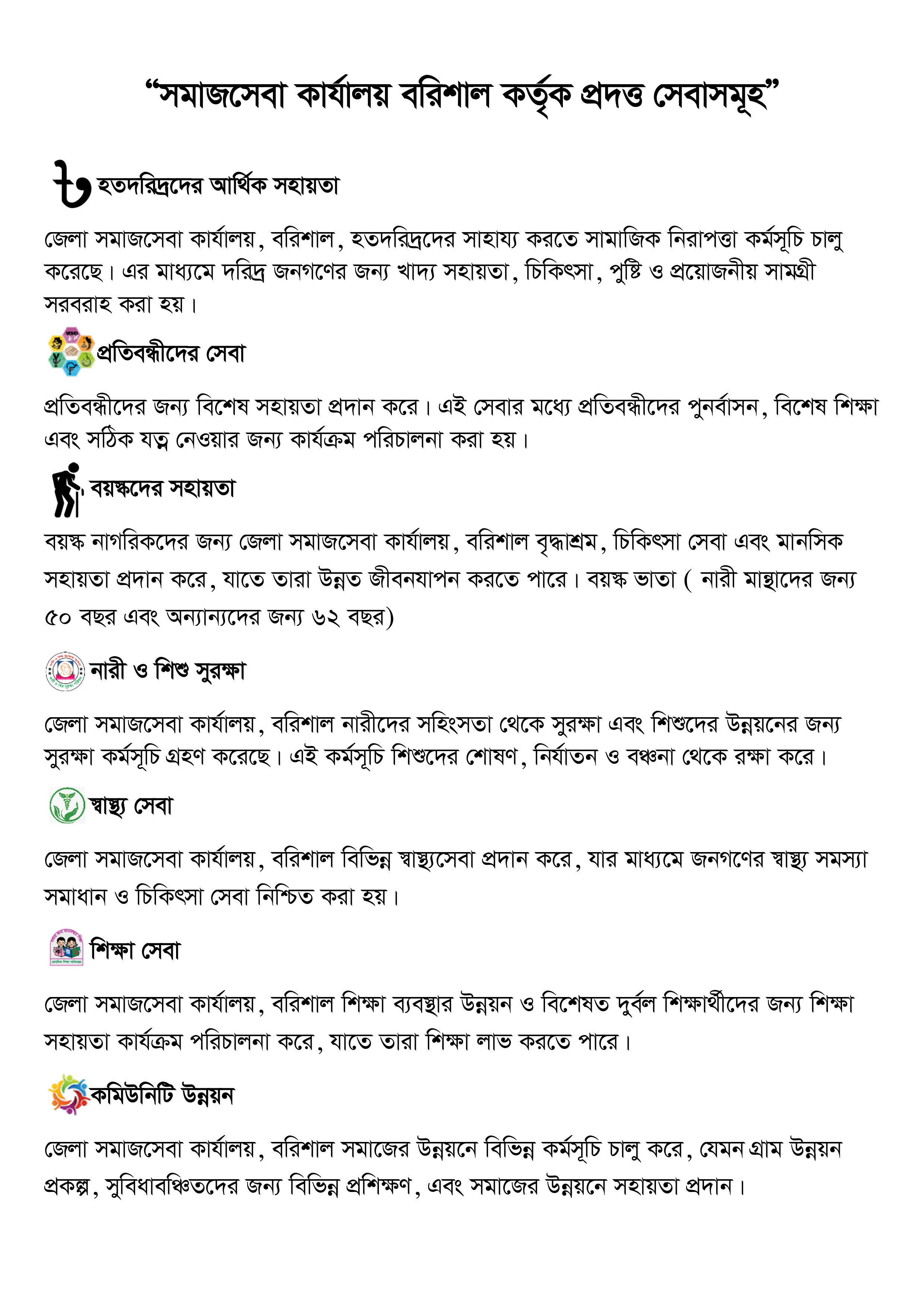 সমাজসেবা কার্যালয় থেকে প্রাপ্ত সেবাসমূহ
